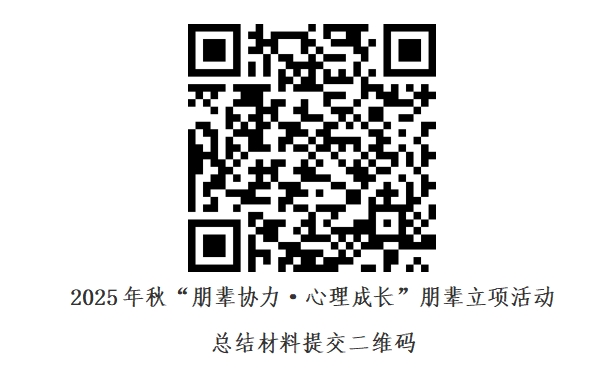 本次立项的项目需要在学生心理健康指导中心和所在单位的指导下组织开展。项目验收形式为跟踪验收,项目负责人需在活动结束后三日内向学生心理健康指导中心提交电子版总结报告(包含文字总结、照片、影像等资料)和活动快讯,扫描下方二维码进行提交。项目经学生心理健康指导中心验收合格准予结项,并统一颁发结项证书,本批次予以立项的项目结项时间为2025年11月25日。