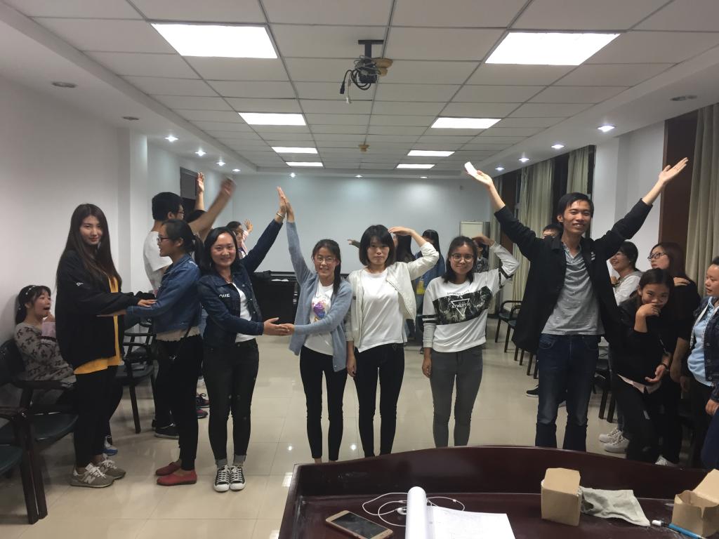 本次主题活动分为三个阶段:首先是热身阶段,通过“一分钟鼓掌”和“我知道”两个小活动打开尴尬拘谨的氛围,让大家敞开心扉,增进彼此的了解,积极地投入到后续活动当中。接下来是过渡阶段,组织了四个团体活动“信任之旅”“集体登陆”“人体字母”“人椅破冰”,使大家感受到了集体的凝聚力和团结的力量。随后的“快乐传递”和“信心启迪”活动促进了感情交流,让大家学会相互欣赏和鼓励,同时这也将作为同学们的研究生生涯中的第一份礼物而珍藏。在每一个活动结束后主持人都会对同学进行采访,通过这种形式让大家谈谈自己的感受,分享自己的心情,使气氛愈加高涨。最后进入到了结束阶段,在《相亲相爱一家人》的歌声中真诚的感谢大家的积极参与,并留下了这个大家庭的温馨合影。