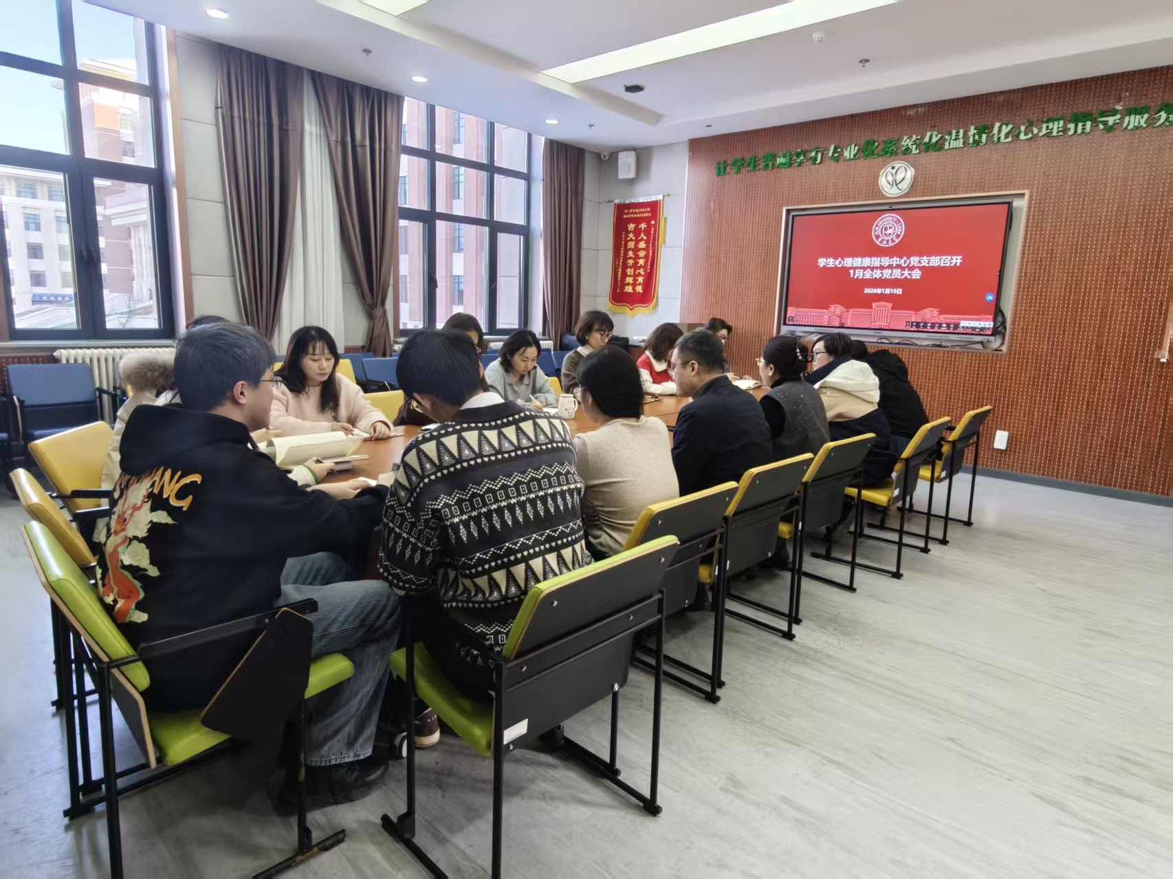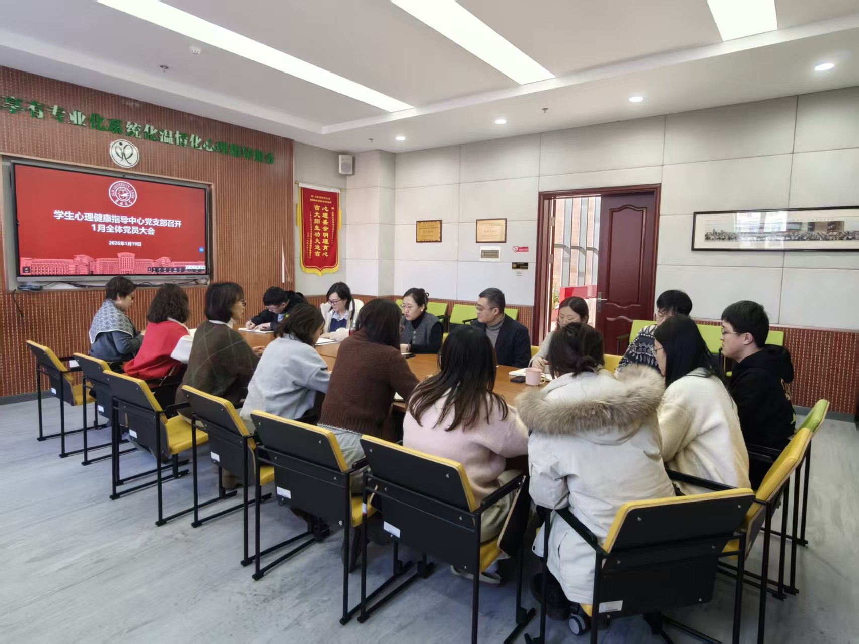 2026年1月19日下午,学生心理健康指导中心党支部以“深入学习贯彻党的二十届四中全会精神,研讨心理育人工作创新发展路径”为主题,于鼎新楼C228召开全体党员大会。会议由支部书记朱丽雅主持,支部15位党员参会。