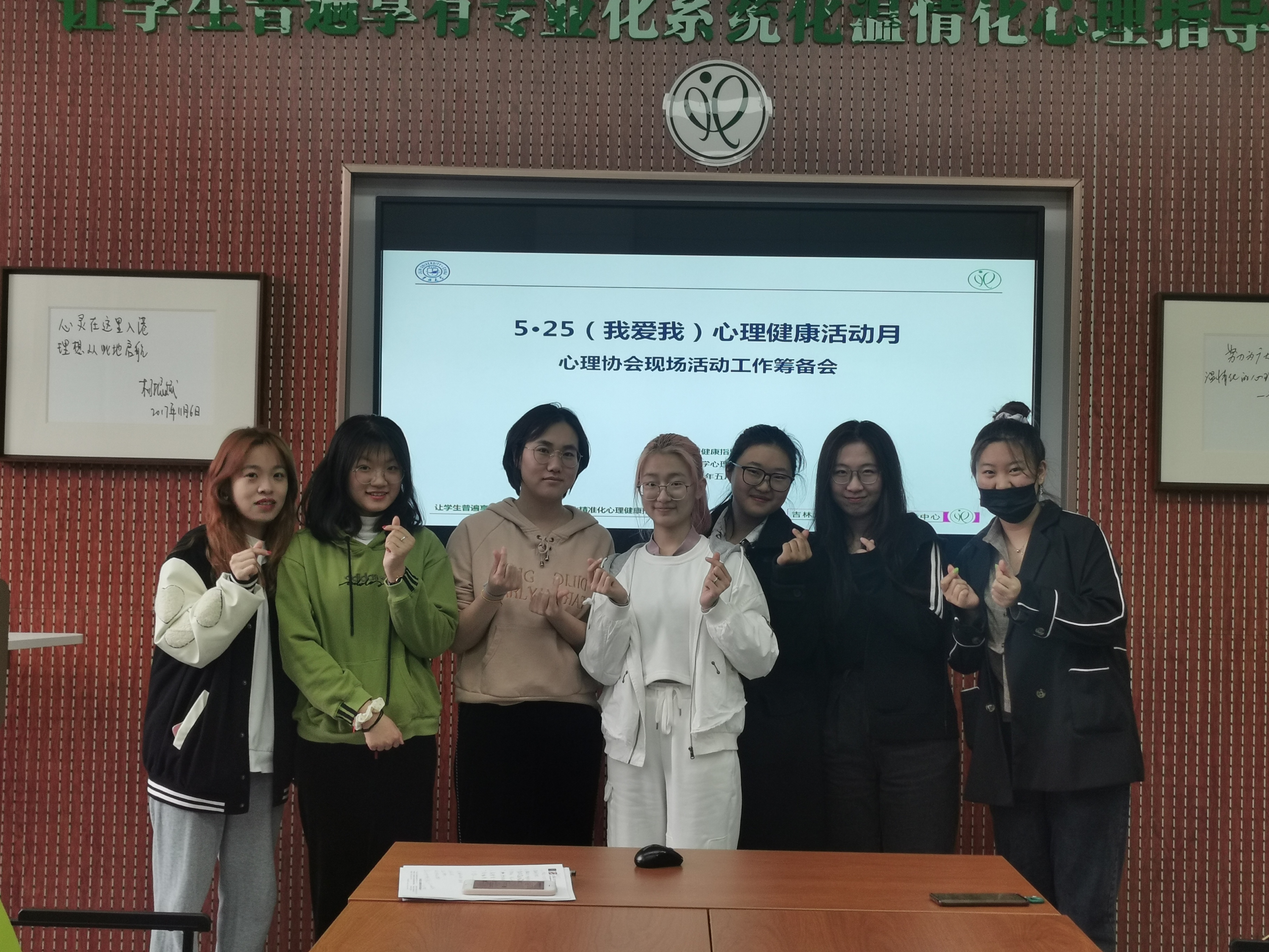 根据《2021年学生心理健康轴带教育指导计划》安排,筹备“5·25(我爱我)心理健康教育月”现场活动,同步第七届“品味·心晴”心理微电影大赛活动进展,心理协会于2021年5月7日在学生心理健康指导中心召开了“5·25(我爱我)心理健康教育月”工作筹备会,会议由心理中心张琳老师指导、心理协会会长谷睿思主持,心理协会各部门负责人参加了此次会议。