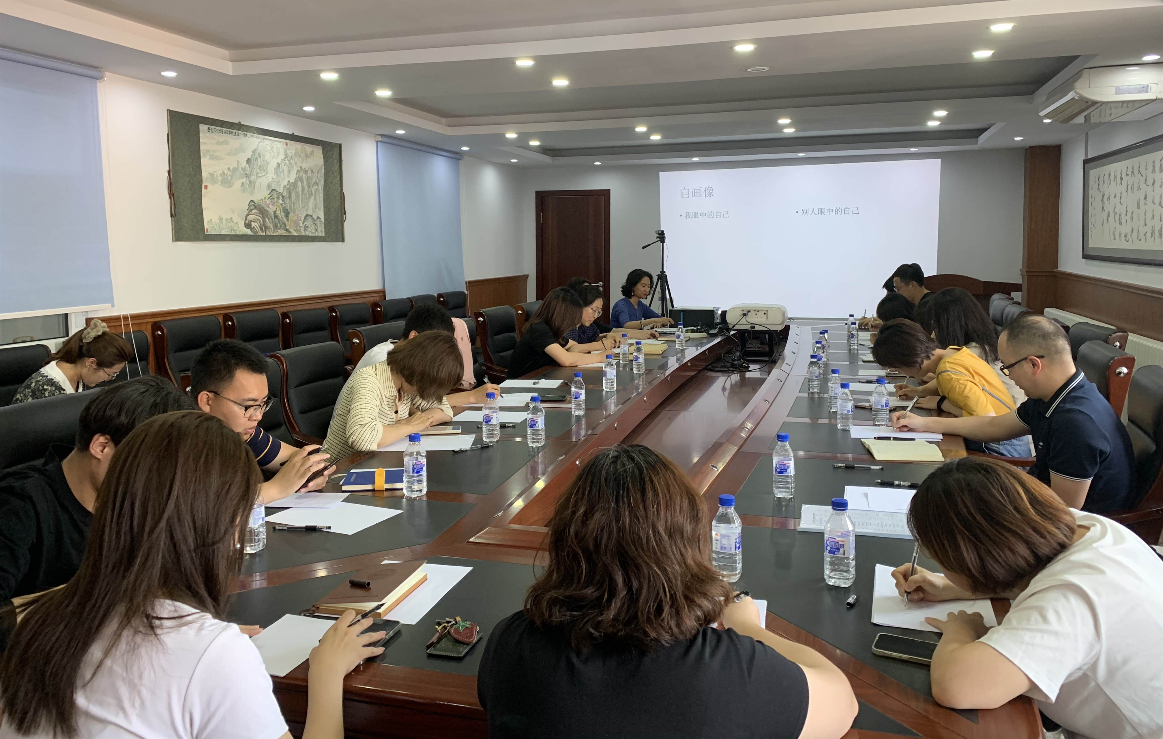 为帮助我校学生工作干部正确认识与积极应对压力,学习艺术性表达技巧,更好地为学生成长成才服务,2021年6月11日,学生心理健康指导中心邀请学生工作部北区学生办公室主任左振鹏老师,在朝阳校区北区事务办四楼会议室举办了第五十二期“心理百科半月谈”暨“画中的心理世界”。学生心理健康指导中心白仲琪副主任及危机管理科全体人员、北区学生办公室人员、部分辅导员和研究生秘书参加了本次活动。