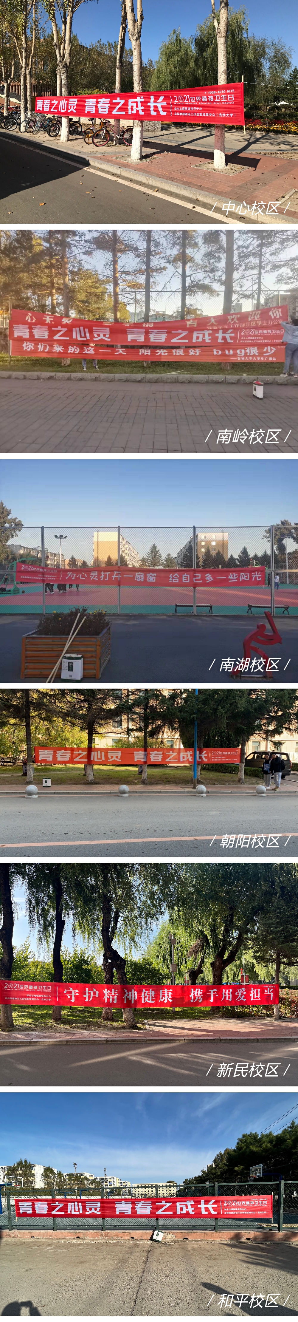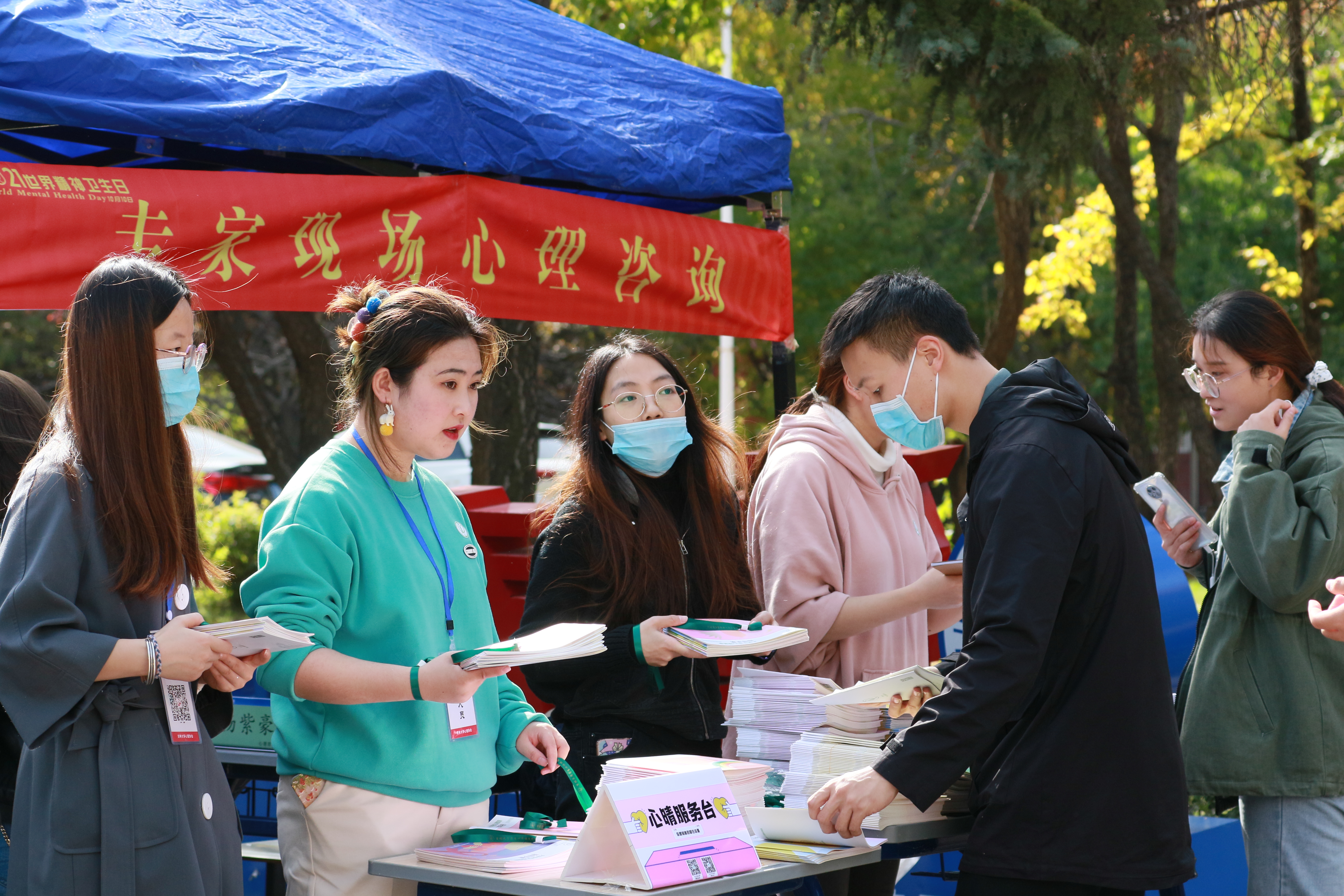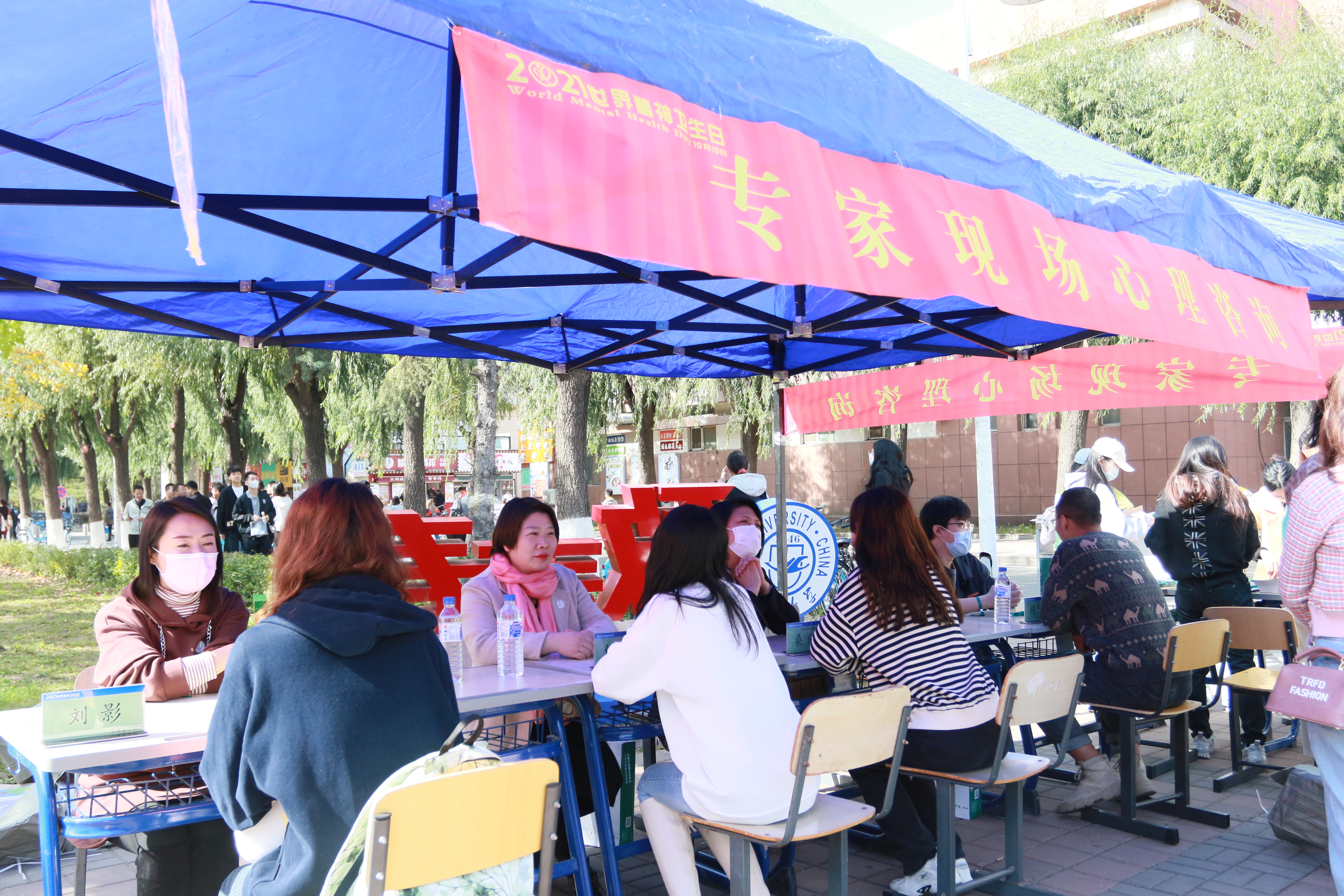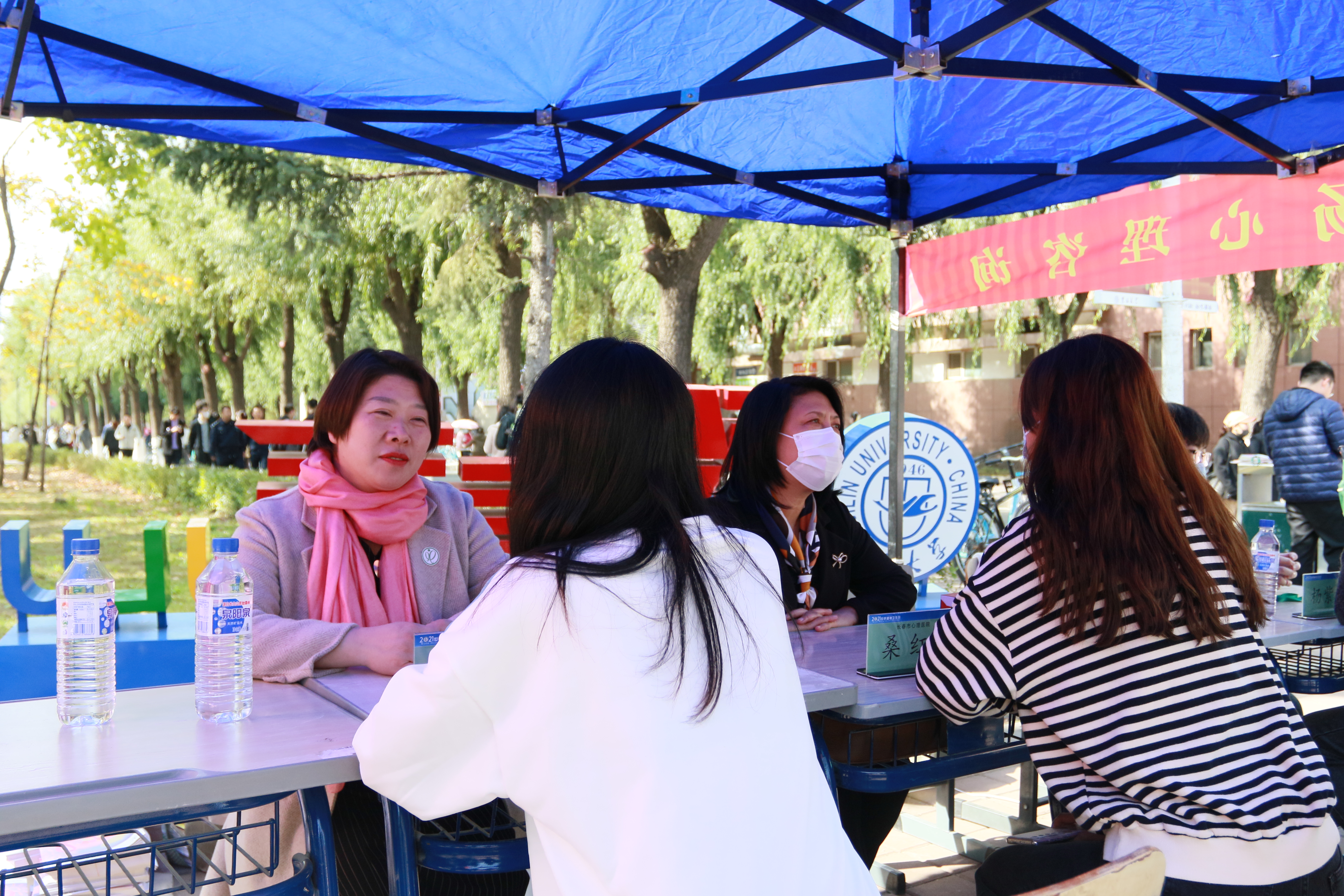为引导学生积极关注身心健康,促进心理成长发展,根据《高校思想政治工作创新发展中心(吉林大学,心理育人方向)建设规划方案》、《2021年学生心理健康轴带教育指导计划》中关于“10·10世界精神卫生日”系列活动的工作安排,在第30个世界精神卫生日到来之际,学生心理健康指导中心于10月8日至10日在六校区同时开展精神卫生相关知识宣传教育活动。10月8日中午,在中心校区体育馆北侧开展了以“青春之心灵,青春之成长”为主题的10·10世界精神卫生日现场活动。长春市第六医院桑红院长到达活动现场,参加“专家现场心理咨询”活动,受到同学们的热烈欢迎。