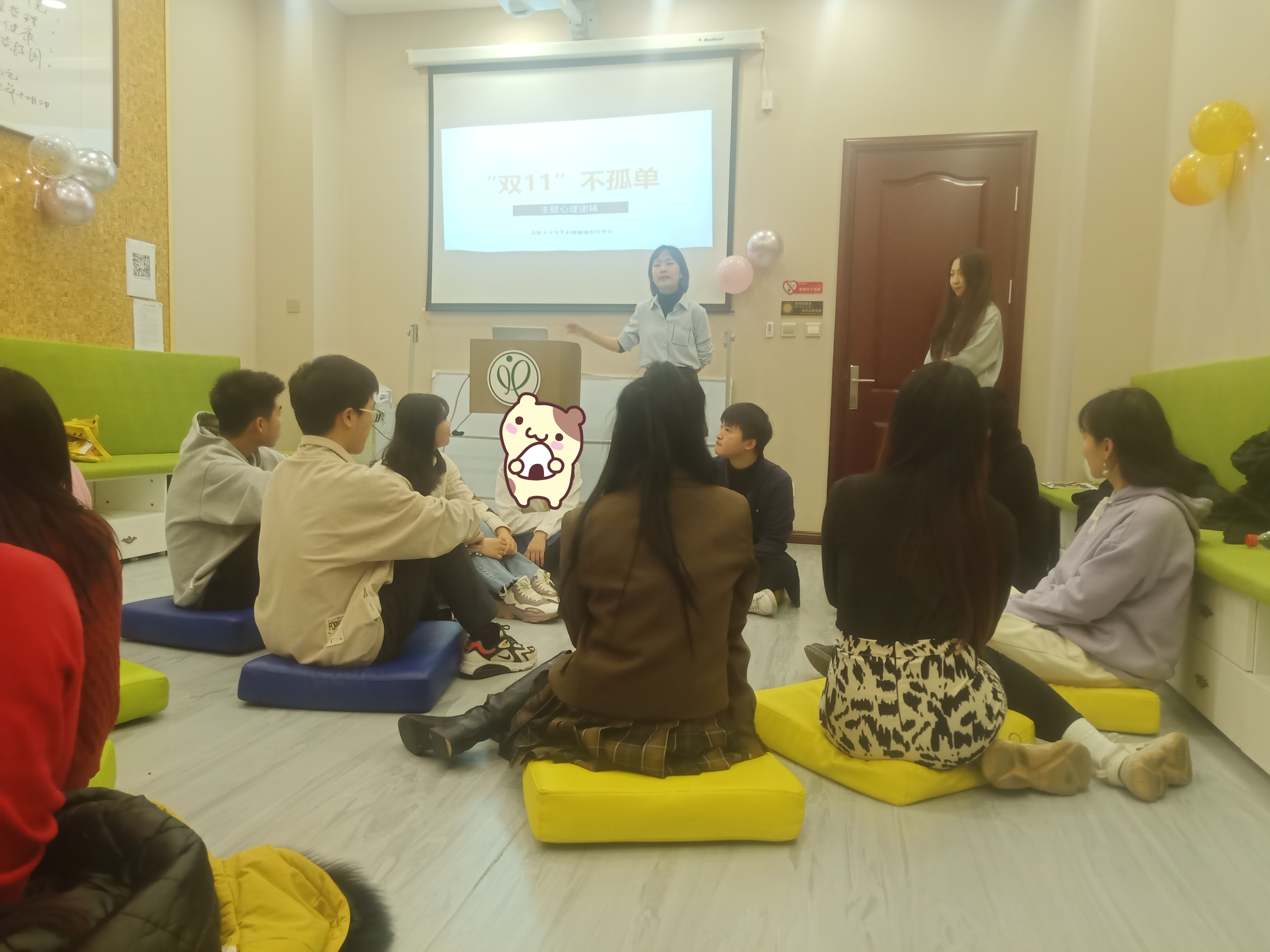 为进一步聚焦学生情感指导需求,提高人际交往质量,提升积极心理品质,2020年11月18日,学生心理健康指导中心指导举办了“双11不孤单”主题团体心理辅导活动。本次活动面向全校同学进行招募,共有来自不同学院的17名同学自愿报名参加。