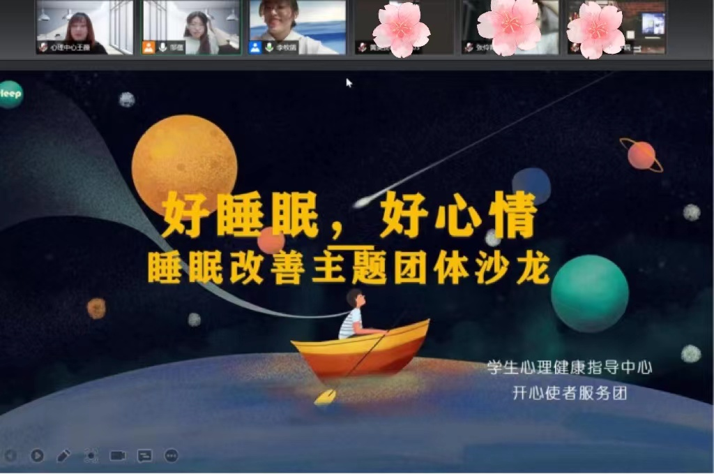 为帮助疫情期间宅寝同学改善睡眠,调节心态,促进身心健康发展,应第21个世界睡眠日的倡导,结合“3·25(善爱我)心理健康指导月”暨疫情期间“心”支持系列活动工作安排,学生心理健康指导中心于3月25日晚举办了线上“好睡眠,好心情”睡眠改善主题沙龙活动。此次活动由学生心理健康指导中心全程指导,“开心使者”服务团承办,通过分享睡眠知识,建立团体人际支持,引导同学们关注自身睡眠情况,积极调节疫情期间情绪状态。