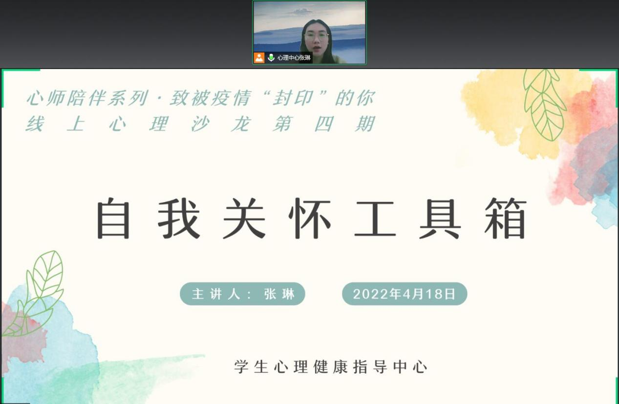 “心师陪伴·致被疫情‘封印’的你”系列活动是学生心理健康指导中心结合学生疫情下心态变化规律和心理支持需求开展的“特别策划”心理支持服务,活动过程中,同学们互动积极,反馈良好。接下来,心理中心还将根据疫情防控形势的新变化,聚焦学生动态心理发展需求,继续推出丰富的心理支持服务,助力学生在疫情背景下化危机为契机,提升积极心理品质。