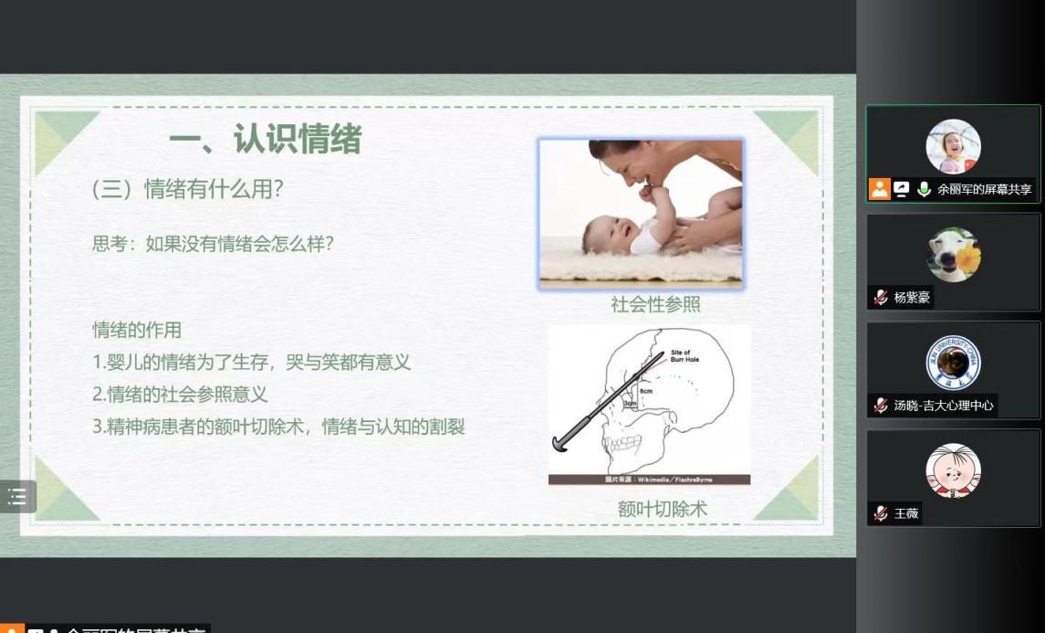 两期“心理支持团体辅导”分别是4月12日由何思彤老师带领的“隔离不隔爱”主题团体,何老师通过团体活动,增加同学间彼此连接,促进沟通,引导同学们倾诉感受,表达情绪,探索方法,进而转化为行动。4月19日由张琳老师带领的“遇见自己”团体中,张老师借用OH卡牌工具,引导同学们自我探索,发现内在的潜意识力量,在成员间的分享互动中,丰富了解决的当下困扰的动力和方向。
