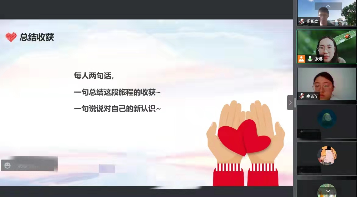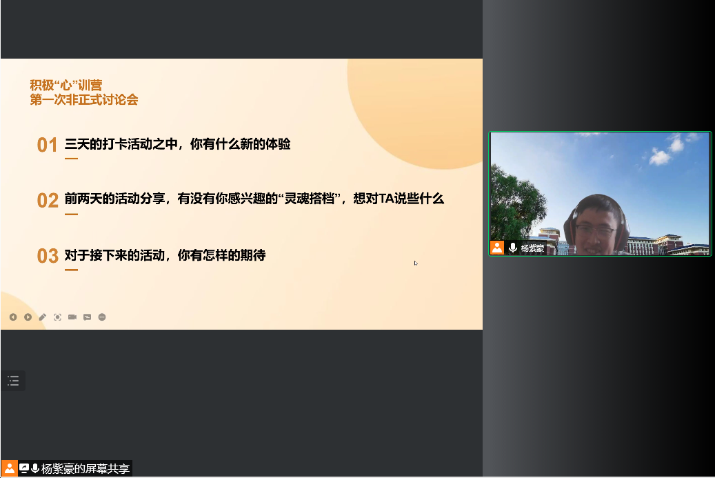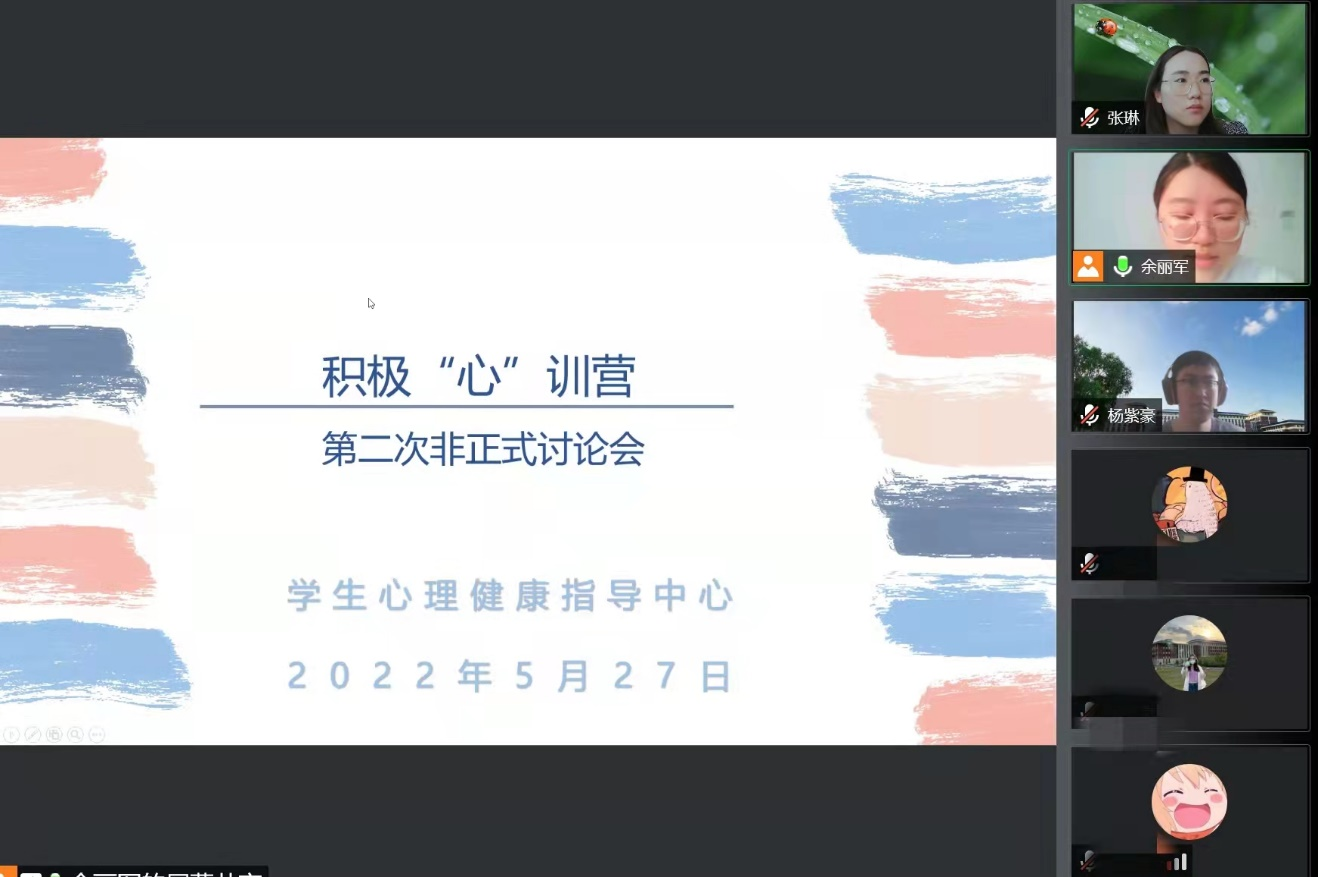 此次训练营是一次特别的自我成长旅程。活动结束后,有同学表示体会到以前从未觉察的感受,看到自己的优势与光芒。通过此次活动,不仅引导同学们拓宽积极自我认知,促进积极自我体验,强壮积极自我认同,同时还加深了疫情期间的同伴交流和人际支持。学生心理健康指导中心开展了“阳光心态,疫路成长”为主题的“5·25(我爱我)心理健康教育活动月”系列活动,引导同学们寻找、创造、丰厚更积极的自我,陪伴大家共同成长!