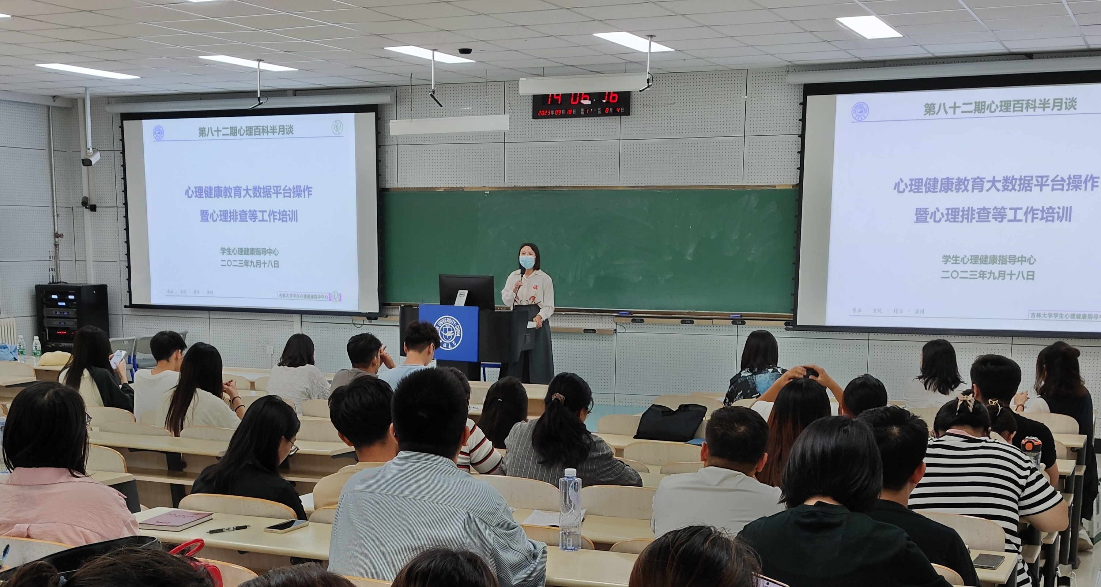 为帮助我校学生工作干部熟悉与掌握学生心理健康大数据平台系统功能,做好心理健康排查工作,实现对学生心理动态的适时关注、及时帮扶,2023年9月18日,学生心理健康指导中心在李四光楼104教室举办了心理健康教育大数据平台操作暨心理排查等工作培训。各学院(研究生培养单位)兼职心理辅导员、新留校辅导员、“2+3”辅导员等学生工作干部,学生心理健康指导中心危机管理科全体人员参加了本次培训。